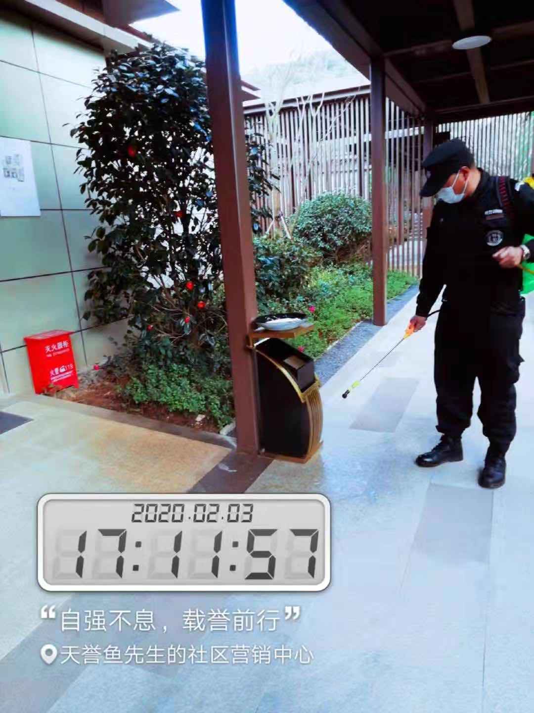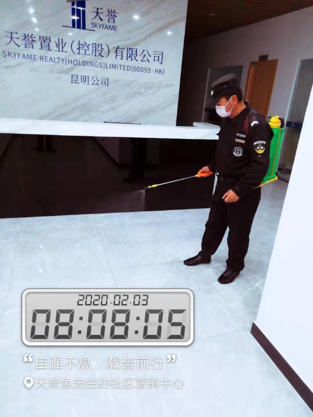 2月3日,安化地產(chǎn)公司物業(yè)管理對售樓中心、樣板房區(qū)和辦公區(qū)進行消毒處理,提前作疫情防控處理準備。