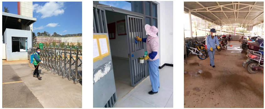 2月7日:1.對(duì)設(shè)備動(dòng)力管理部大門、理化室、安化卡點(diǎn)、集貿(mào)市場、燈光球場進(jìn)行消毒;2.園區(qū)巡查正常;3.在安寧新購置水桶后拉運(yùn)消毒液600公斤;4.協(xié)助福保祥瑞公司完善復(fù)工復(fù)產(chǎn)期間的相關(guān)資料。