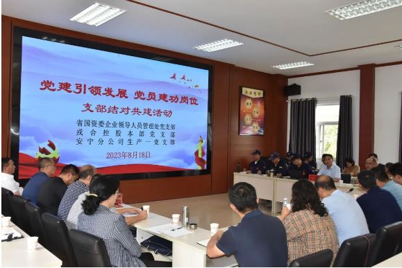 8月18日,省國資委企業(yè)領(lǐng)導(dǎo)人員管理處黨支部聯(lián)合戎合控股本部黨支部到安化公司與安寧分公司生產(chǎn)一黨支部開展“支部結(jié)對(duì)共建”活動(dòng)。省國資委企業(yè)領(lǐng)導(dǎo)人員管理處黨支部、戎合控股本部黨支部、安化公司班子成員及安寧分公司生產(chǎn)一黨支部共計(jì)40余名黨員參加活動(dòng)。
