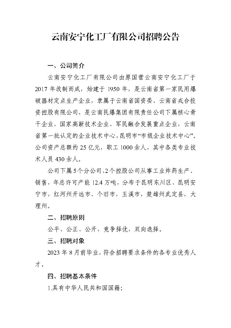 上一篇: 云南安寧化工廠有限公司招聘公告
